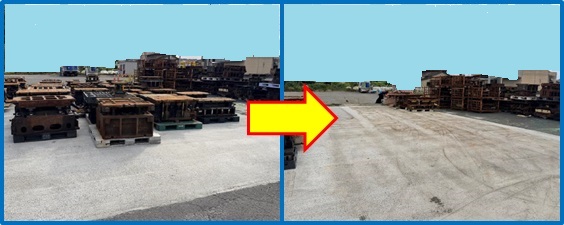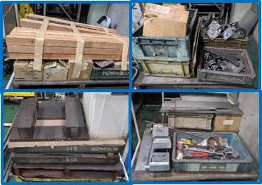 | 外部倉庫テントに不動在庫部品がある。対象品のリストを作成し、営業へ保管または廃棄の判断を依頼確認した結果、旧品や設変前の部品と判明したため、廃棄した。この作業により、パレット4枚分のスペースを削減。 活スペース=1.2㎡×4枚=4.8㎡ |