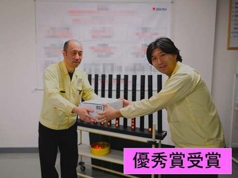 日頃の安全(リスクアセスメント)・5S・改善の中から月毎に2つの成果発表を全部署が行い、特に安全・品質・生産性が向上した素晴しい内容のチームには優秀賞が投票によって決まり、表彰式では記念品が贈られます。
