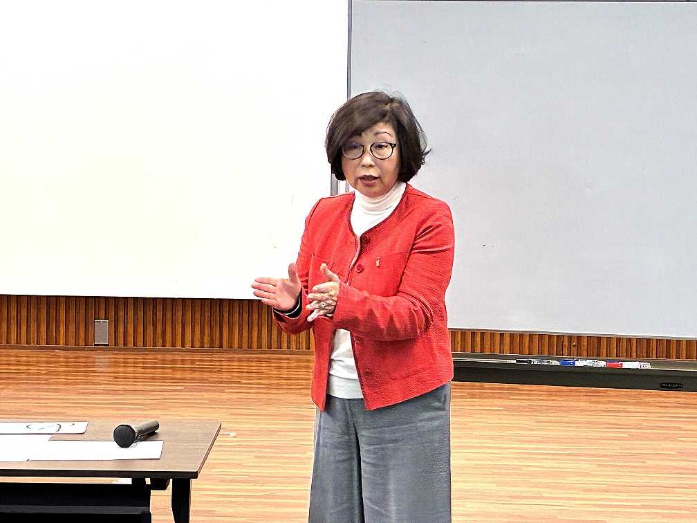 あしかが産学官連携推進センターの『足利大学地域DX化教育プロジェクト』開校式が開催されました。足利大学地域DX化教育プロジェクトは足利市、足利商工会議所と本学が取り組む、あしかが産学官連携事業です。学生に実社会の課題にチャレンジしてもらい、より実践的で具体的な情報教育を目指すプロジェクトです。足利市や足利商工会議所の協力を得て、学生の地域貢献や地域社会のDX化を目標に足利大学生12名様が課題にチャレンジしていいただきます。今回もビジネスマナー研修講師として相談役小倉乃里子が登壇しました。