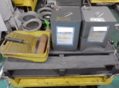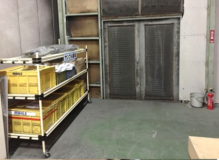 金型ラック倉庫の調査をしていたところ加工油が保管されているパレットがあり内容物を確認してみると使用されていない加工油の他、スプレーボトル、ペイントローラー、ハケ、ステンレス廃材を使用した容器などや一部の容器には使用途中の加工油が残ったままの状態があったため、加工油は危険物倉庫へ移動しその他の不要な備品類は廃棄した。今回の改善でラック倉庫1枠確保できたが他にも無駄にスペースを使用している物が確認されているため、引き続き整理を進める。